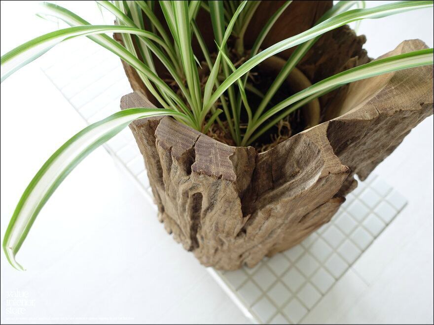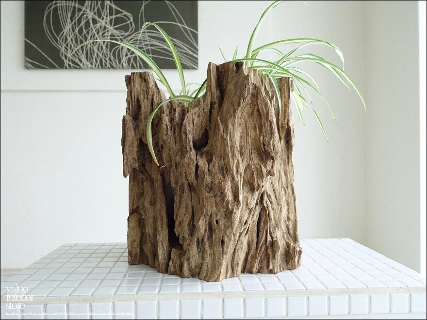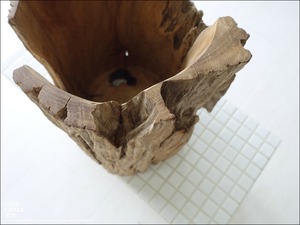 自然な様をそのままに削り出して製作したオールドチーク総無垢材のプランツカバー。個性的で硬く荒々しいチーク材独特の表情が魅力的です。そのままでもオブジェとしてもお楽しみいただけますが、植物とアレンジしていただくことで一層癒しの雰囲気づくりにお役立ていただけます。