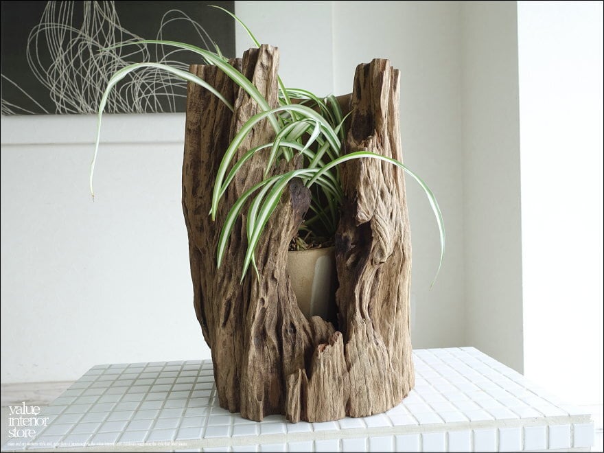 自然な様をそのままに削り出して製作したオールドチーク総無垢材のプランツカバー。個性的で硬く荒々しいチーク材独特の表情が魅力的です。そのままでもオブジェとしてもお楽しみいただけますが、植物とアレンジしていただくことで一層癒しの雰囲気づくりにお役立ていただけます。