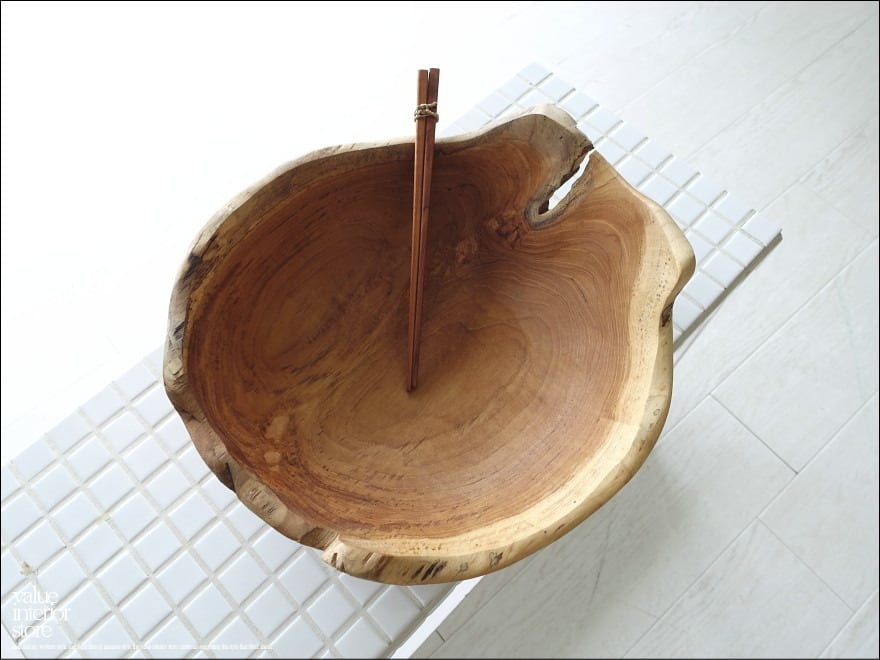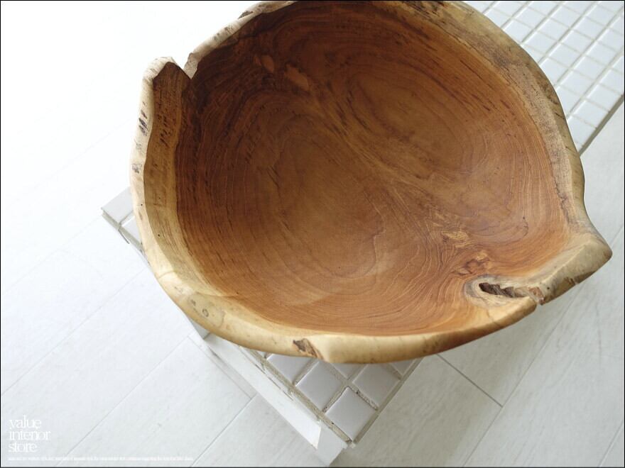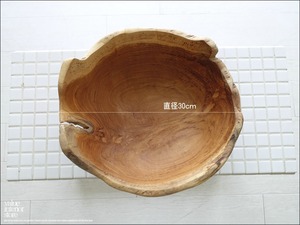 チーク無垢材 大型プリミティブボウル / N01 入れ物 大型食器 サラダボウル 無垢材トレイ 自然な様 ナチュラル Φ30cm 世界三大銘木