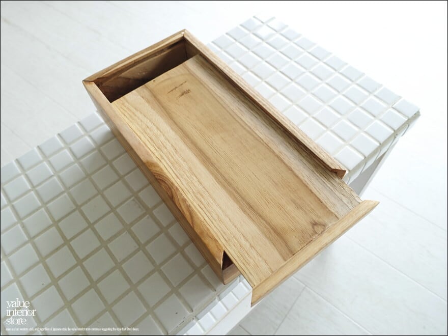 ◇日本製のような正確さは無いかもしれませんが、1点1点出来上がるまでの殆どの工程を手作業で行う、インドネシア家具職 人 たちの手造りの製法にはとても暖か味が感じられます。細かな傷ワレやフシ穴、色の濃淡、また反りなどの無垢材特有の”暴れ”が見受けられる場合がございますが、素材や手づくりのテイストとして工業品にはない自然の質感をお楽しみ下さい。またティッシュの出し入れは底にあるカバーをスライドしていただきますが、多少硬さがある場合もございます。予めご了承ください。