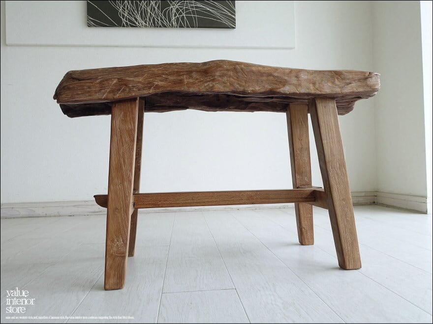 オールドチーク無垢材 プリミティブベンチX01 長椅子 古材家具 一枚板 総無垢 ナチュラル 椅子 イス チェア 世界三大銘木 幅83cm