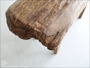 オールドチークならではの深みのある色合いとが魅力のベンチ。滑らかな木肌から表面仕上げの良さを感じさせ、プリミティブな座面は変化に富んだ個性に溢れています。お部屋をスローダウンした空間づくりにお役立ていただけます。ベンチだけでなくインテリアのディスプレイ台としてもステキです。