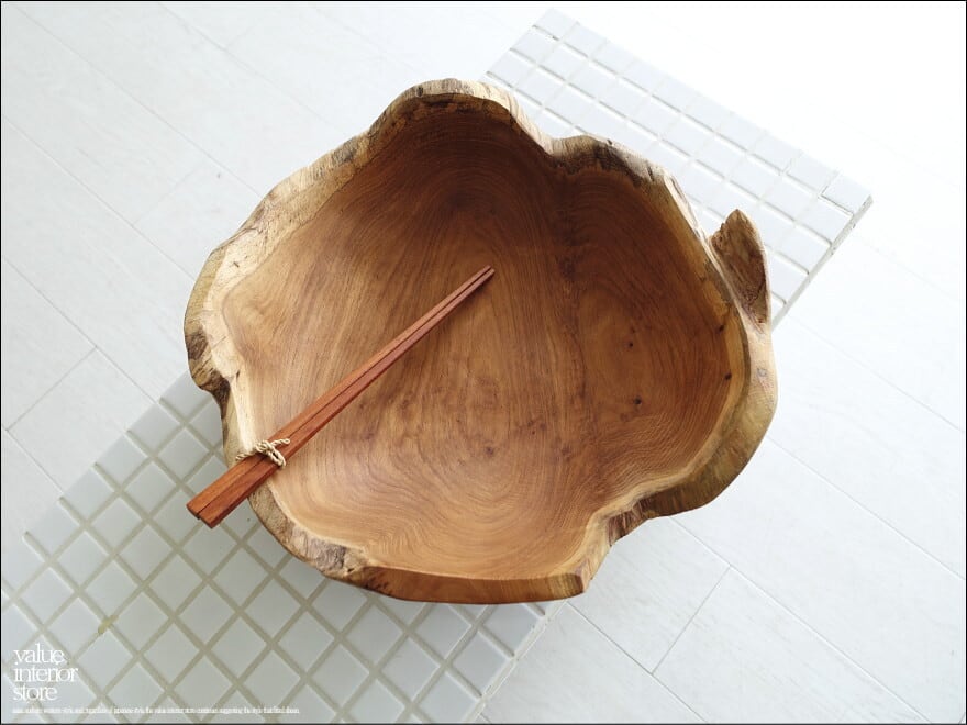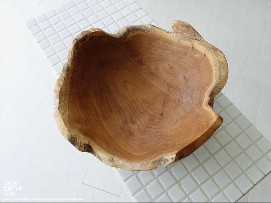 チーク無垢材 大型プリミティブボウル / N02 入れ物 大型食器 サラダボウル 無垢材トレイ 自然な様 ナチュラル Φ31cm 世界三大銘木