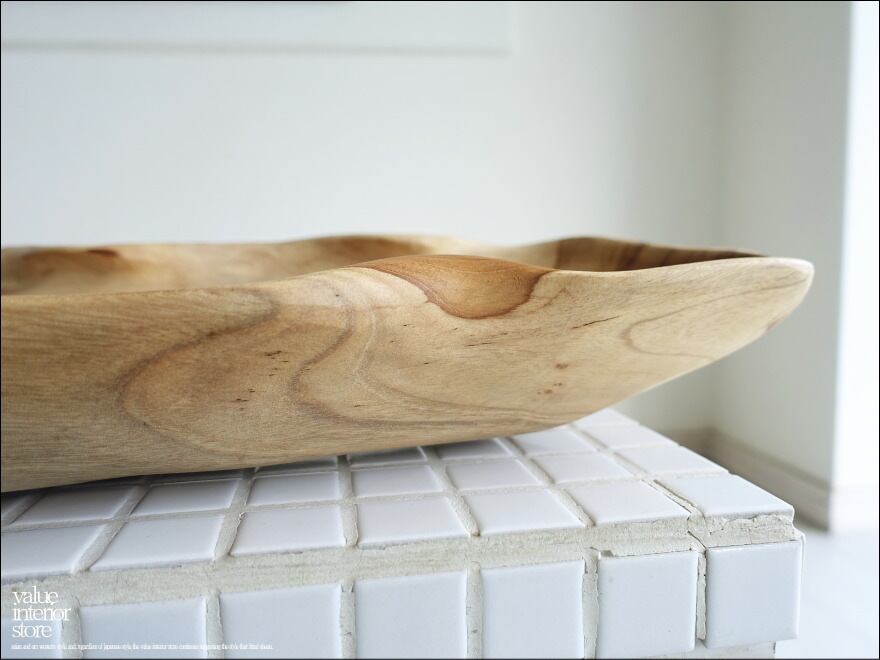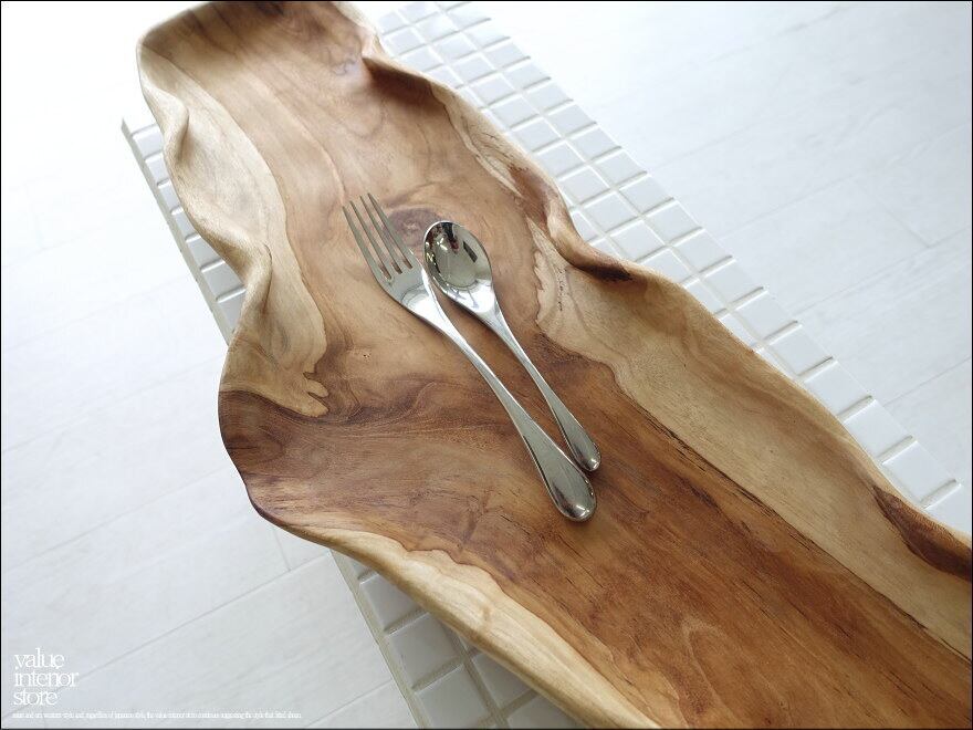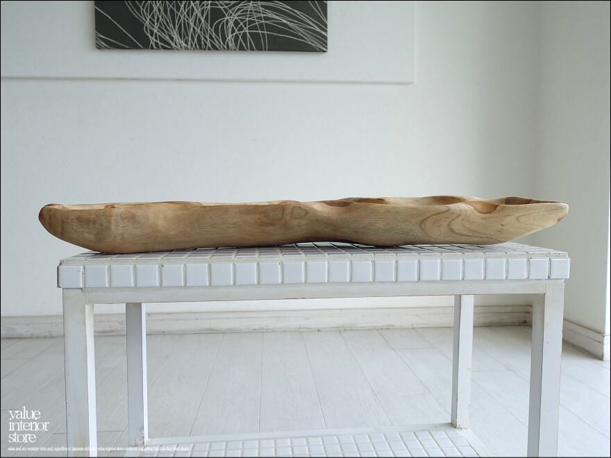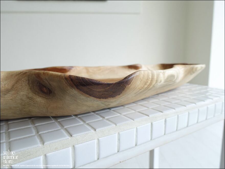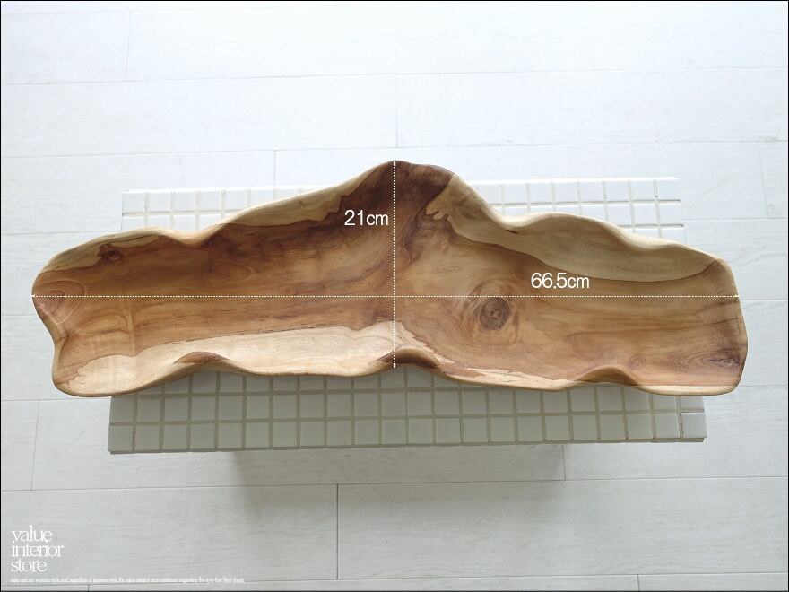 チーク無垢材 大型プリミティブトレイN66.5cm 大型食器 菓子鉢 サラダボウル 入れ物 自然な様 ナチュラル 世界三大銘木
