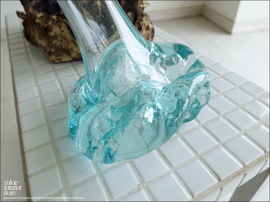 硝子フラワーベースSin03 花瓶 プリミティブガラスベース 手作り 一輪挿し 一点物 ハンドメイド 無垢材 自然な様
