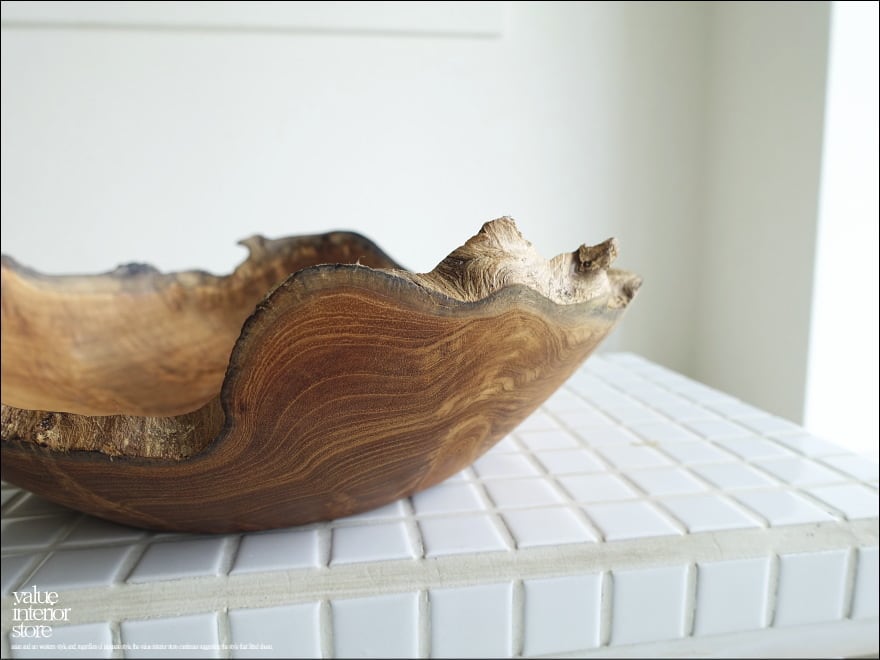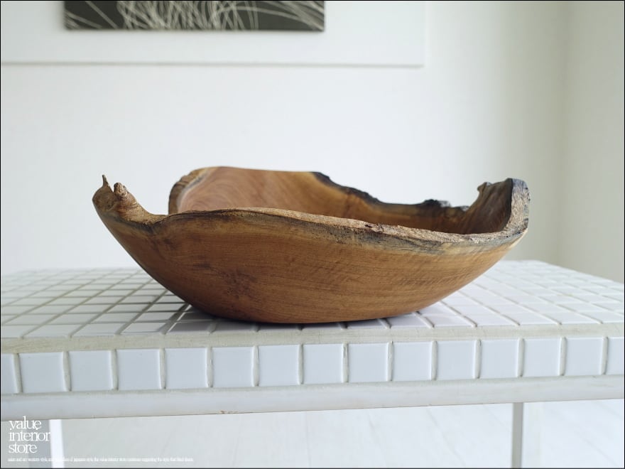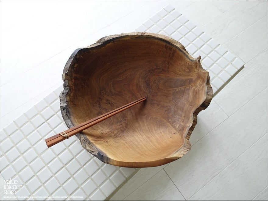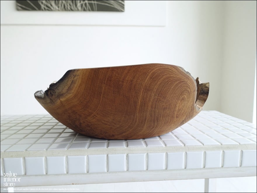 チーク無垢材 大型プリミティブボウル / N03 入れ物 大型食器 サラダボウル 無垢材トレイ 自然な様 ナチュラル Φ30.5cm 世界三大銘木