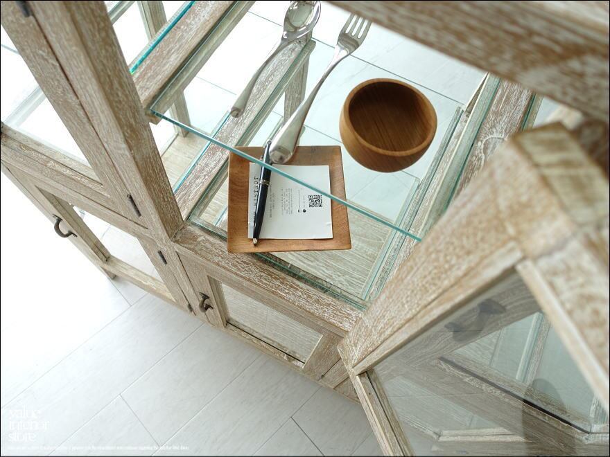 経年変化により徐々にコントラストがハッキリとしてきます。ガラス面が多くどの角度からも中がキレイに見えますので、お店のショーケースとしてもお使いいただけます。また、扉は6箇所ありますが、中は仕切りの無い空間ですので用途に合わせて自由に使えます。カフェなどのパン用ショーケース、食器棚、小物のディスプレイなど幅広くお使いください。