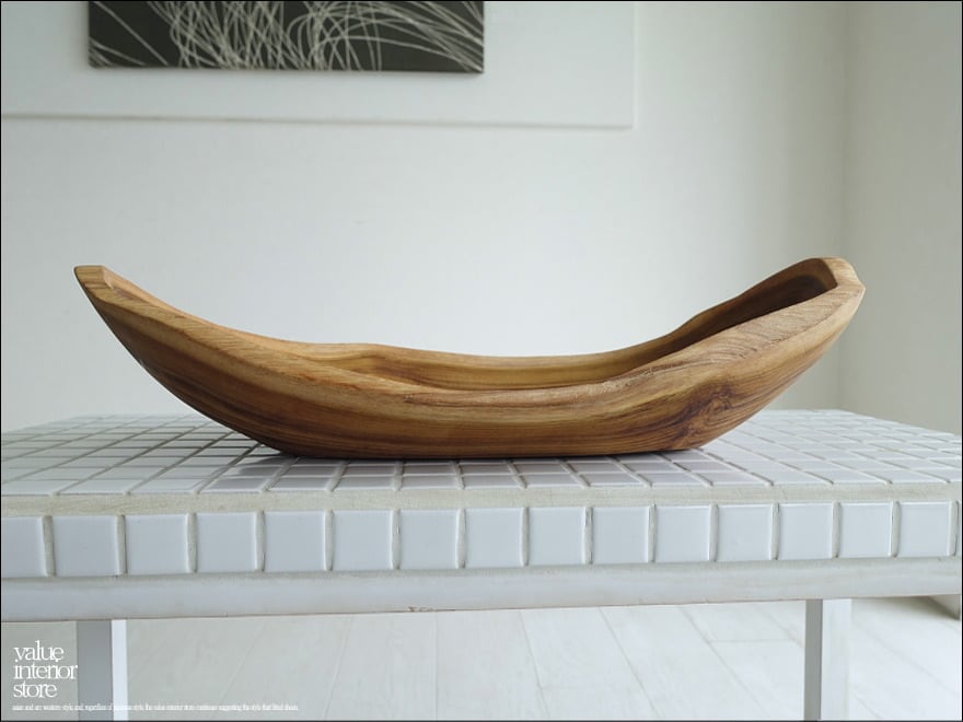 変化に富んだプリミティブで素朴な質感のチーク無垢材の大型ロングトレイ。同じ形の無い味のある形は一点物の良さを感じさせてくれます。表面はミネラルオイル(ライム油・大豆油・チョウジ油・ナツメグ油)仕上げで、サラダボウルなどの食器としてもお使いいただけます。(食品等輸入届出書提出済)