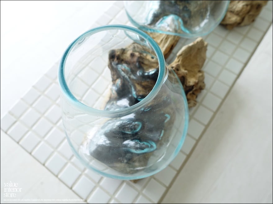 プリミティブベースT 花瓶 メダカ鉢 めだか鉢 プリミティブガラスベース 吹きガラス 手作り 一点物 ハンドメイド 無垢材 自然な様
