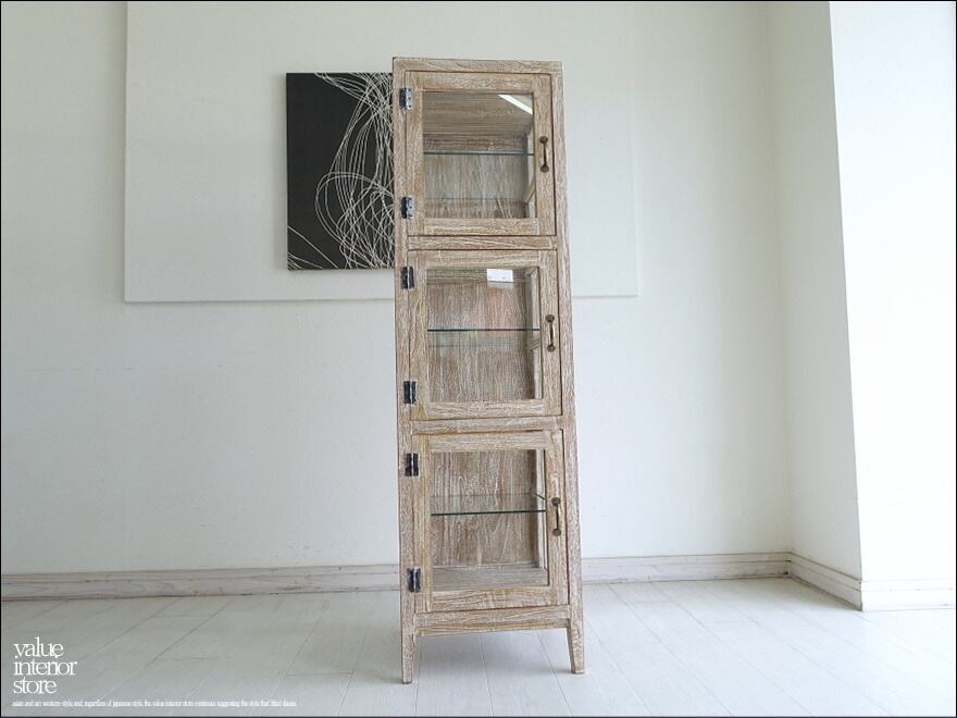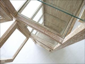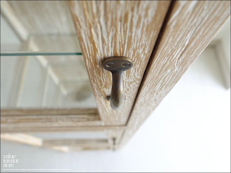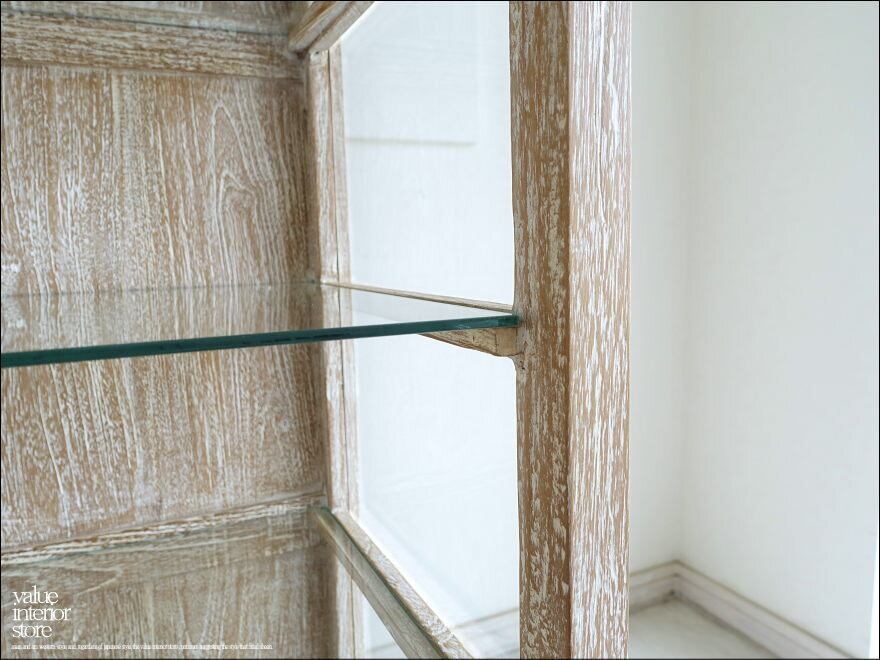 フレームは贅沢にチーク総無垢で、金具は真鍮製を使用いたしました。3面ガラスでどの角度からも中がキレイに見えますので、お店のショーケースとしてもお使いいただけます。アンティークではありませんが古くからそこにあったような温か味のある仕上がりになっています。カフェなどのパン用ショーケース、食器棚、小物のディスプレイなど幅広くお使いください。