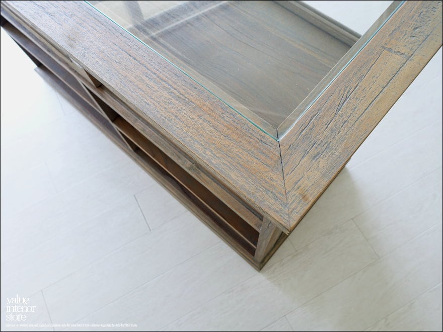 「O様 オーダーカウンター 」チーク無垢材 ショーケースカウンターBalq ガラスケース レジ.台 飾り棚 店舗什器 展示カウンター シャビーシック 無垢材家具
