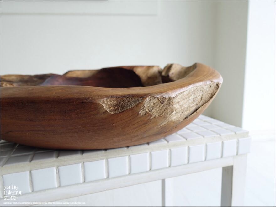 チーク無垢材 大型プリミティブオーバルトレイ / N08 入れ物 大型食器 サラダボウル 自然な様 ナチュラル Φ39.5cm 世界三大銘木