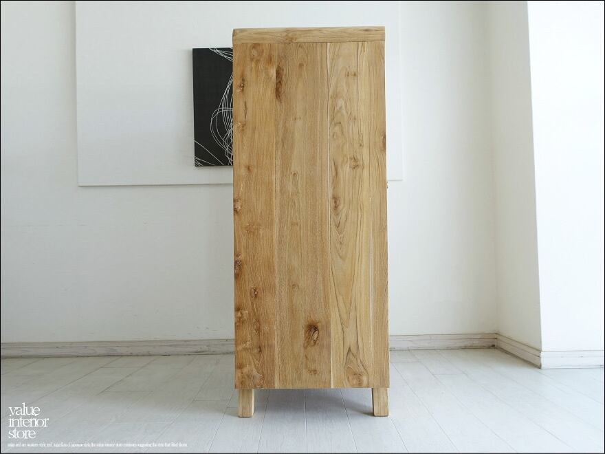 「 H様 サイズオーダーワードローブ 」チーク無垢材 ワードローブTim/N 洋服タンス 衣類収納 ロッカータンス ガラス戸 店舗什器 ナチュラル 素朴 無塗装 銘木家具