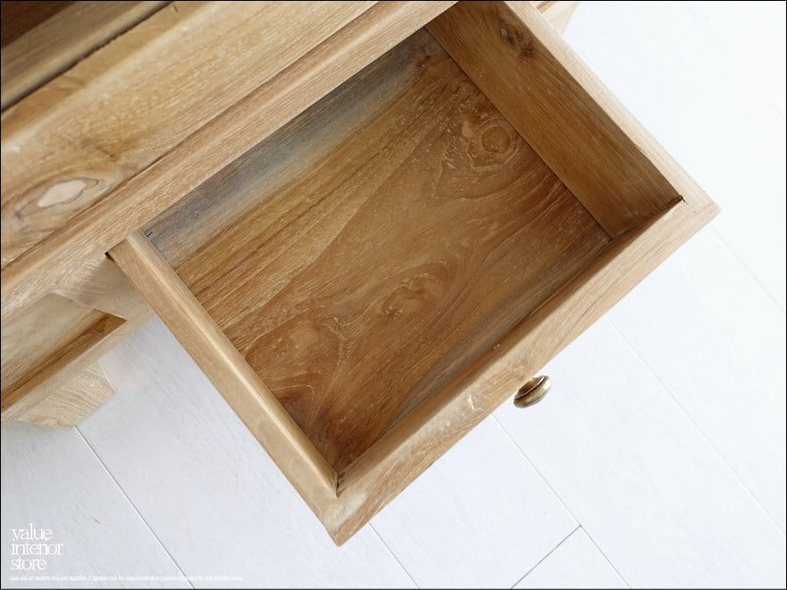 ◇日本製のような正確さは無いかもしれませんが、1点1点出来上がるまでの殆どの製作工程を手作業で行う、インドネシア家具職人たちの手づくり製法はとても暖か味が感じられます。細かな傷、ひび割れやフシ穴、色の濃淡、また反りなどの無垢材特有の”暴れ”や修理痕が見受けられる場合がございますが、無垢材の素材や特徴、また手づくりのテイストとして工業品にはない自然の質感をお楽しみ下さい。