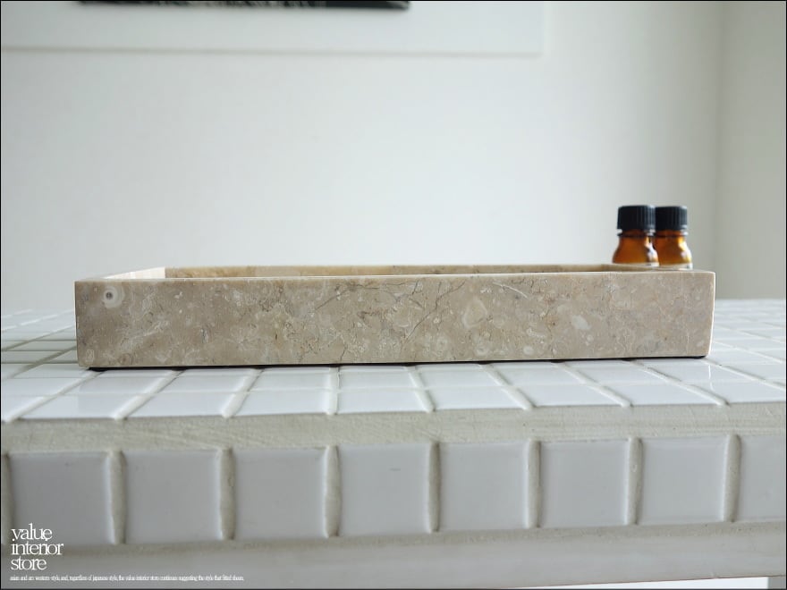 大理石で高級感があり落ち着いた雰囲気が素敵なトレイです。小物を飾る台として、キッチンでは調味料起きとして、また洗面所でソープディスペンサー置きとしてお使いいただけます。