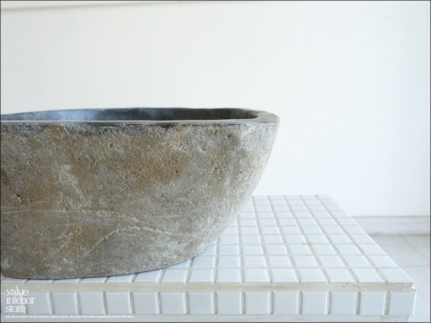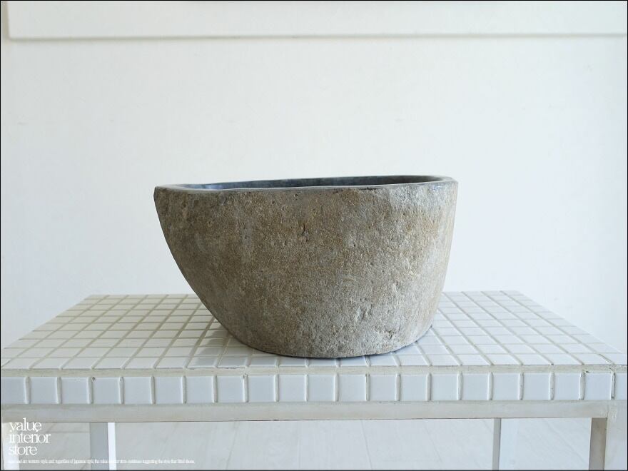 一つとして同じ形のない自然に作られたボウル状の形と色合いや質感に、落ち着いた和の雰囲気が感じられる自然石の洗面ボウル。