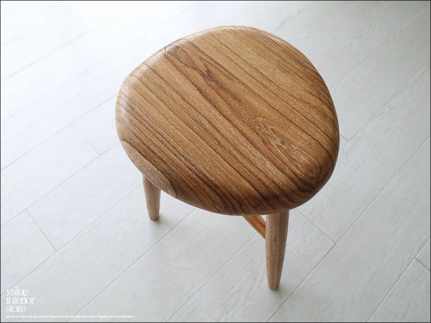 ナチュラルな座面にはチーク材の個性的な木目が現れていて、ナチュラルな雰囲気を存分に楽しめるスツール。細身の脚ですがそれぞれのジョイント部分を丁寧に製作していますので、とてもしっかりとした頑丈な作りです。表面は無垢材の素朴な質感を引き立たせています。