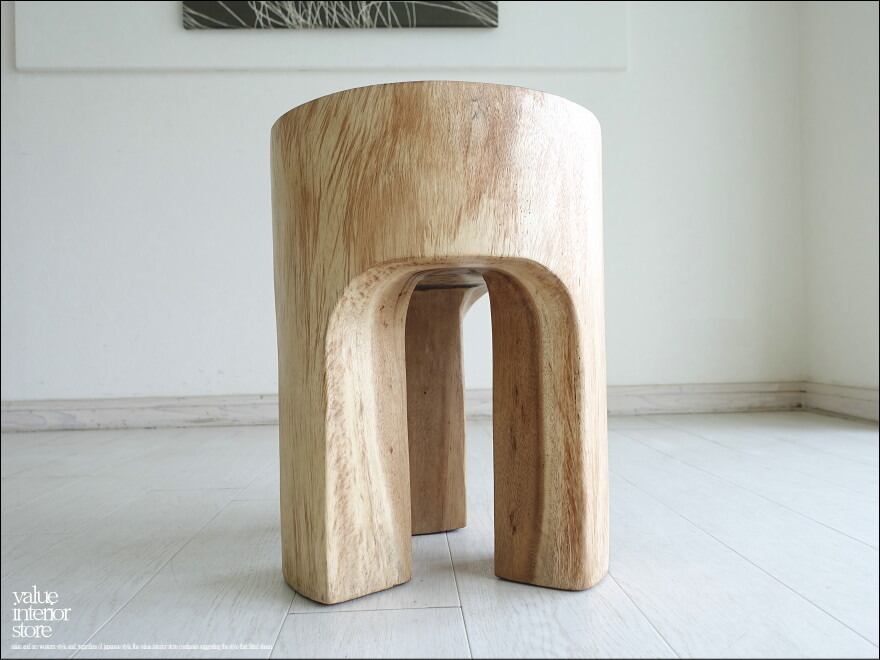 モンキーポッド材の優しい印象の木肌の削り出しのスツール。コロンとしていて削り出した3本脚のデザインが素敵です。ナチュラルな雰囲気で幅広いテイストに合わせやすく設置しやすいスツール。スツール以外にも花台やディスプレイ台としてもお勧めです。お気に入りの空間づくりにぜひお使いください。