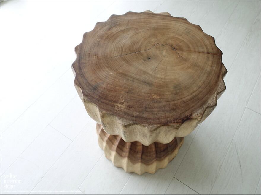 モンキーポッド材の緩やかな木目が優しい印象のスツール。丸太より削り出して製作していますので、どっしりとした重さがあります。ナチュラルな雰囲気で幅広いテイストに合わせやすく設置しやすいスツール。スツール以外にも花台やディスプレイ台としてもお勧めいたします。お気に入りの空間でお使い下さい。
