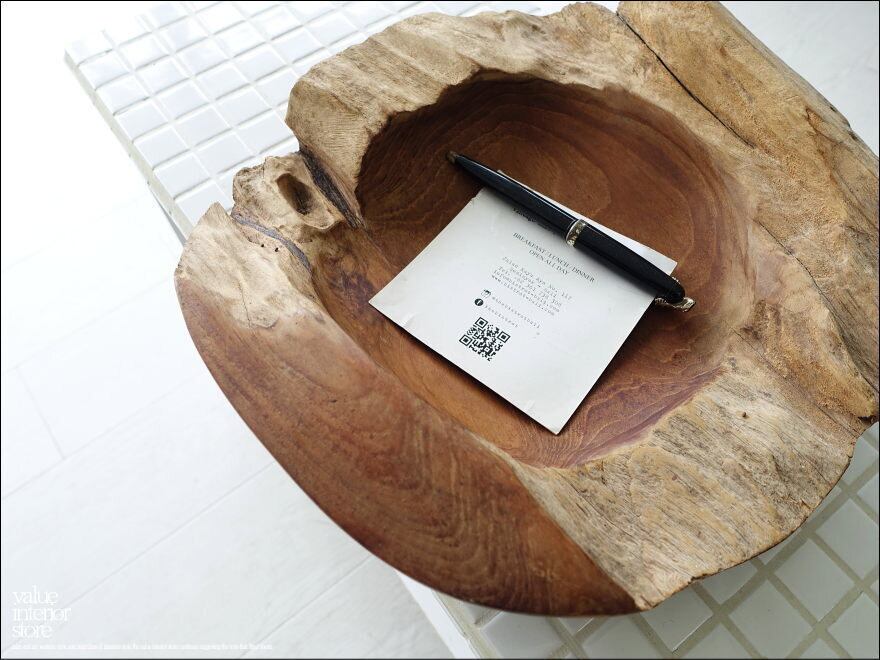 チーク無垢材 大型プリミティブオーバルトレイ / N09 入れ物 大型食器 サラダボウル 自然な様 ナチュラル Φ35cm 世界三大銘木