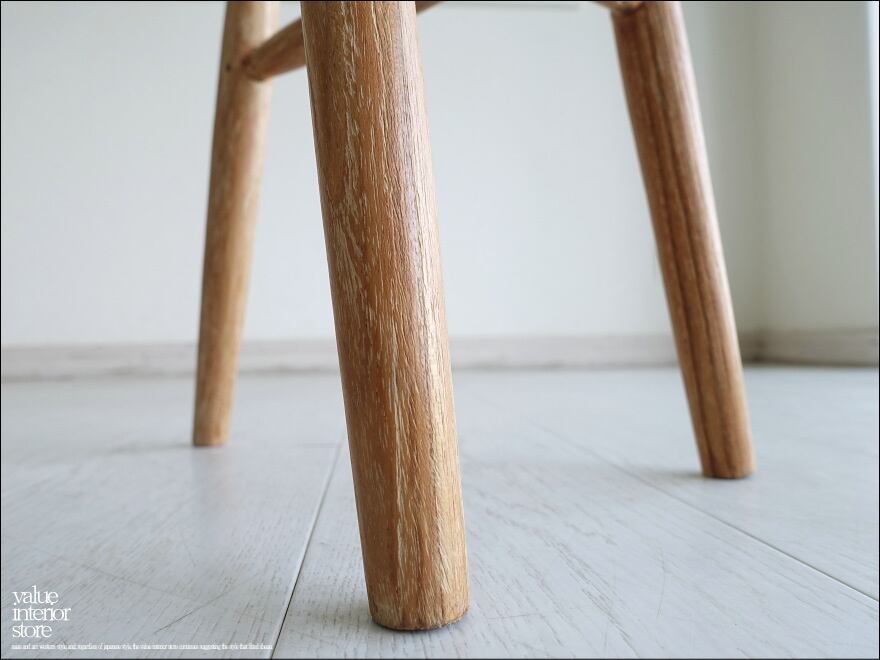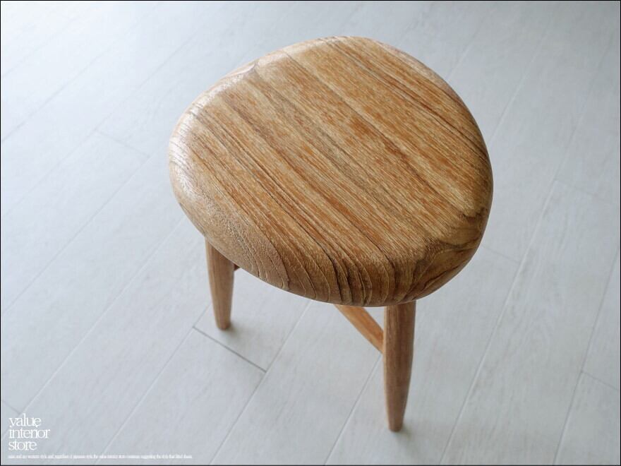 ナチュラルな座面にはチーク材の個性的な木目が現れていて、ナチュラルな雰囲気を存分に楽しめるスツール。細身の脚ですがそれぞれのジョイント部分を丁寧に製作していますので、とてもしっかりとした頑丈な作りです。表面は無垢材の素朴な質感を引き立たせています。