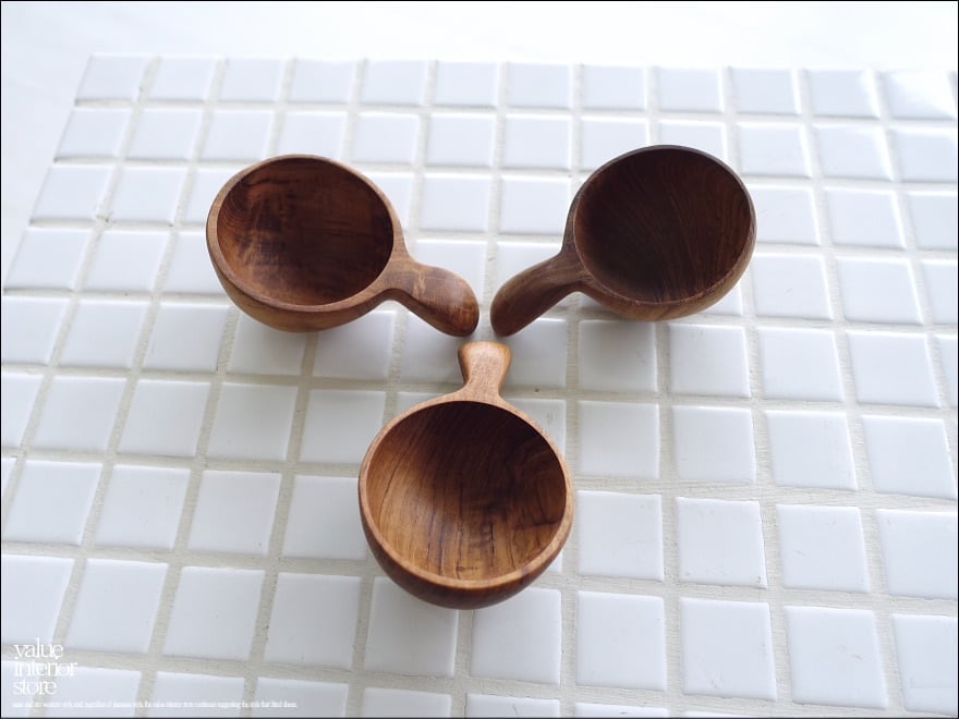 チーク材の個性的な木肌が素敵なコーヒースクープ。無垢材ならではの軽くて滑らかな仕上がりが魅力的です。