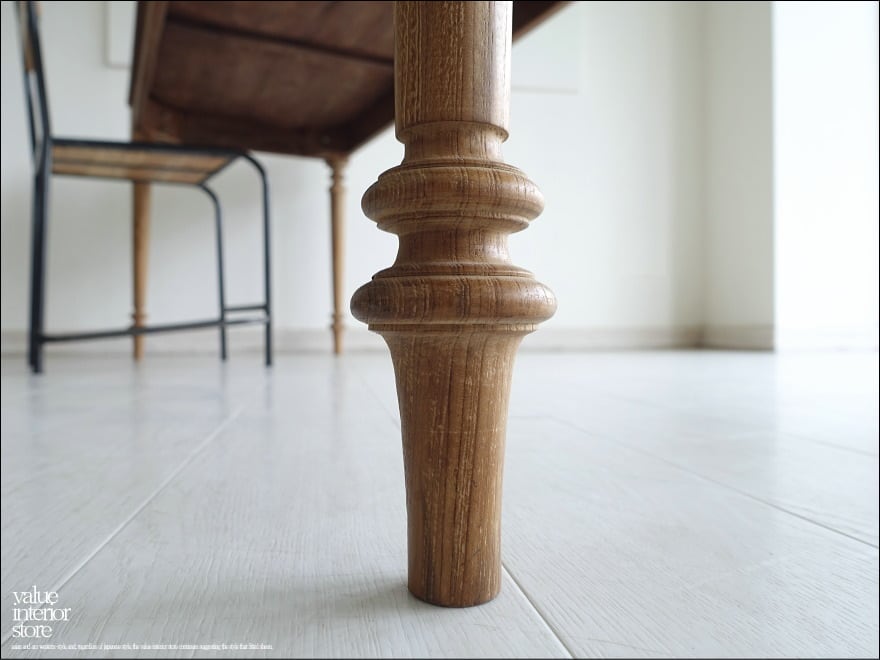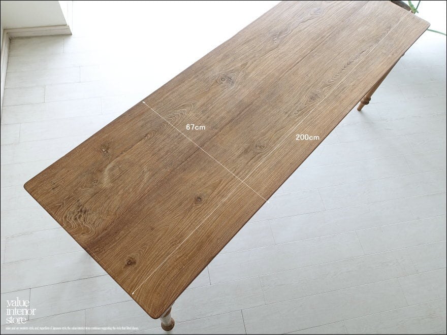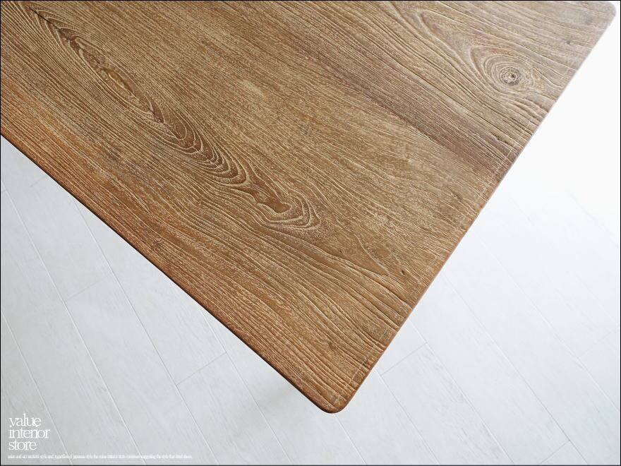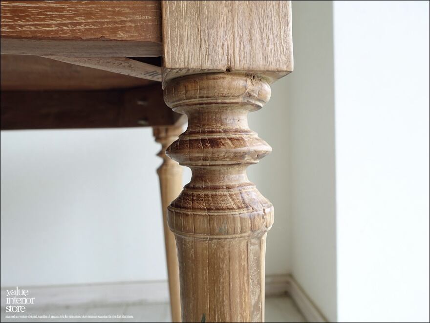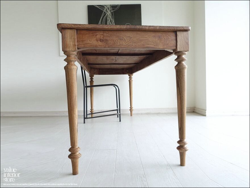 乾燥状態に優れた質感をそのまま残し全面再仕上げ処理を行った再生家具のチークヴィンテージテーブル。横幅は200cmもあり広々としています。物語を感じさせそうなチーク材独特の色合いで、古いものならではの渋く落ち着いた質感から雰囲気が感じられます。硬くて張りのある素材だからこそ製作できる天板の厚みはシャープな印象で、職人が丹精こめて作った印象に溢れていています。西洋、アジアン、和風モダン、北欧など幅広いテイストのインテリアと相性良くコーディネートできますので、あなただけの空間づくりにぜひお使いください。