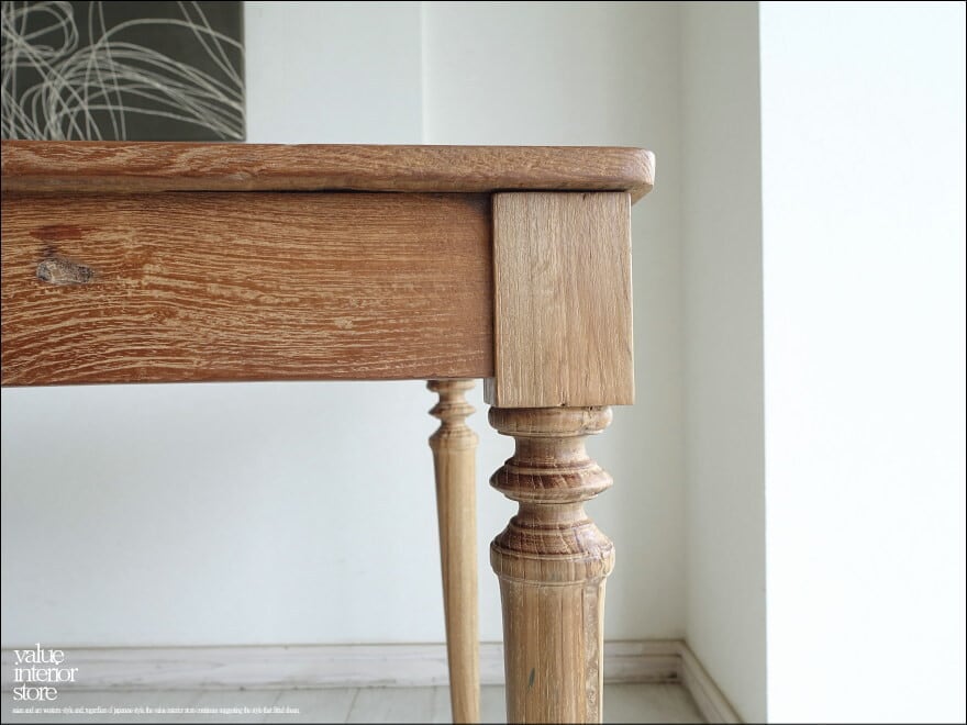 こちらの商品は、表面再仕上げや欠損箇所の補修などをしている再生家具となります。元々の雰囲気は残して仕上げています。傷、ワレやフシ穴、色の濃淡、傾き、歪み、反り、汚れなどがございますが、素材や古いものの持つテイストとしてご理解をいただきますようお願い致します。