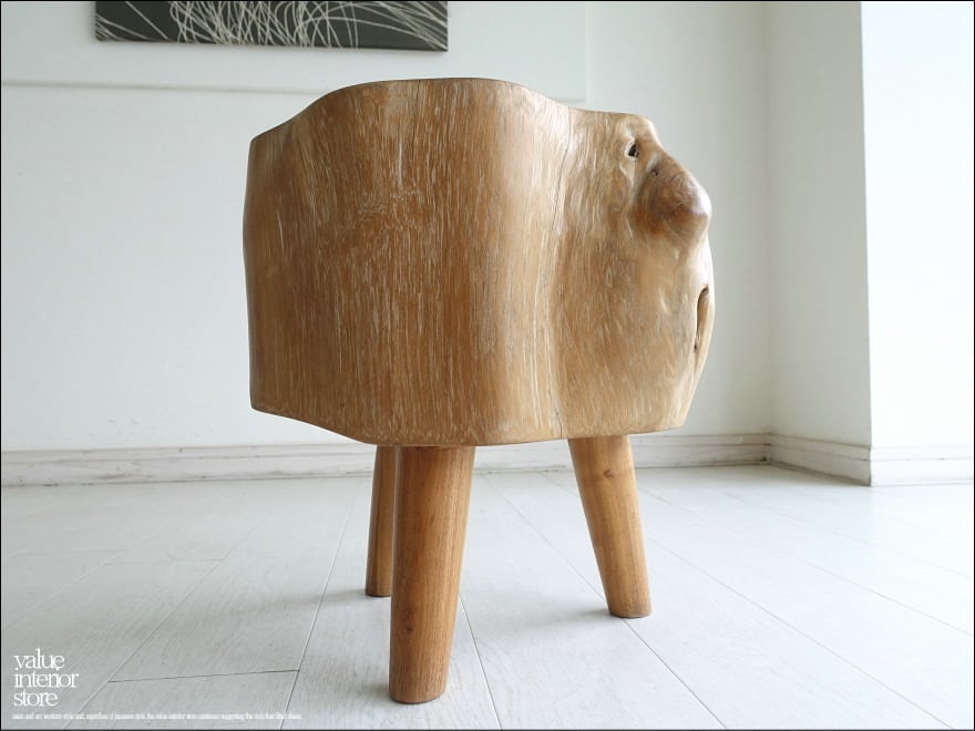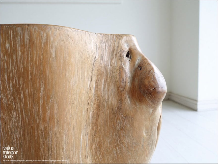 チーク無垢材 プリミティブチークスツールTrin/N イス 椅子 チェア 丸太 ベンチ 花台 ナチュラル 一点物 世界三大銘木 重さ20kg
