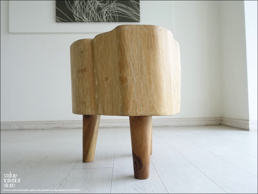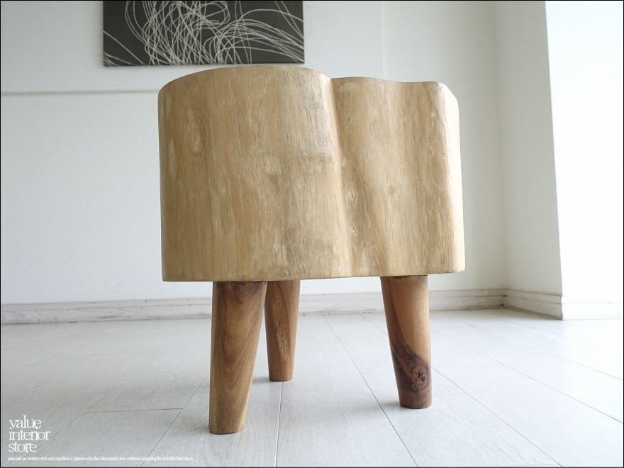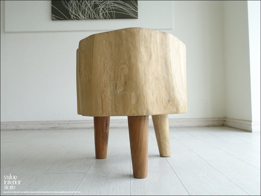 チーク無垢材 プリミティブチークスツールTrin/N01 イス 椅子 チェア 丸太 ベンチ 花台 ナチュラル 一点物 世界三大銘木 重さ24.5kg