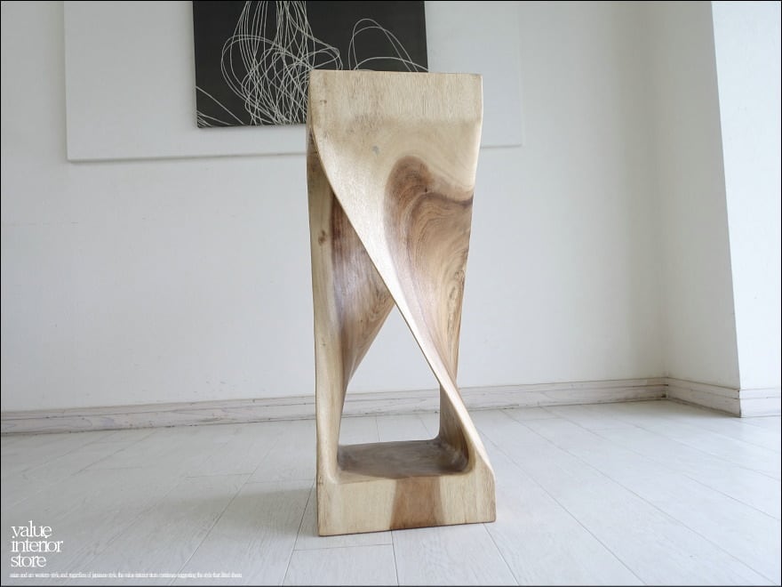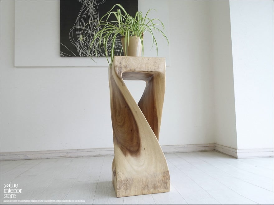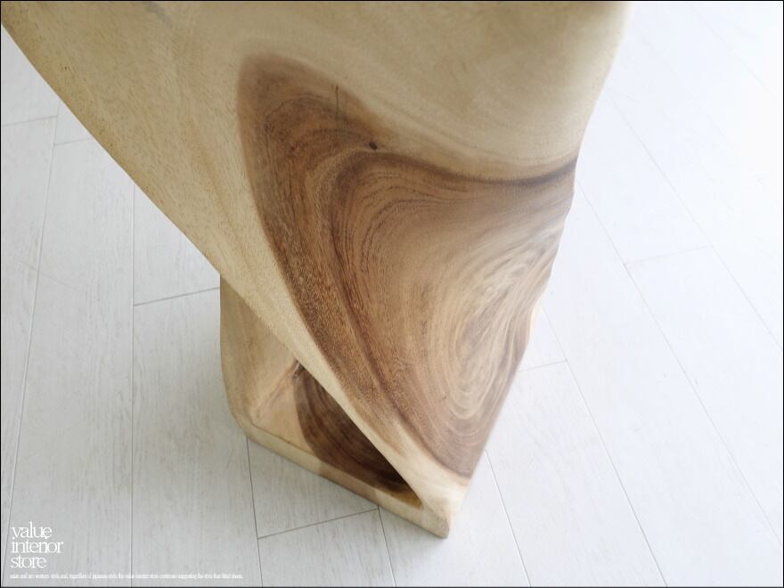 緩やかな螺旋の曲線が優しい印象のモンキーポッド総無垢材のバースツール。ナチュラルな雰囲気で幅広いテイストに合わせやすく設置しやすいスツール。スツール以外にも花台やディスプレイ台としてもお勧めです。お気に入りの空間でぜひお使い下さい。