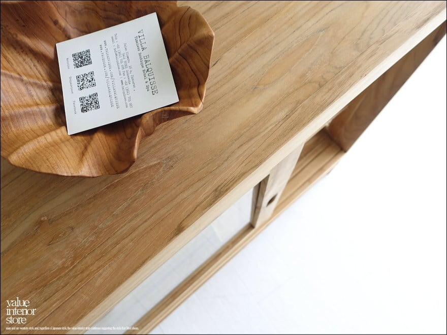 ◇チーク無垢材は人間のお肌同様に、長時間、直射日光や冷暖房の風のあたる場所や湿気、乾燥が著しい場所を嫌います。反りや割れ、退色の原因になりますのでお避けください。