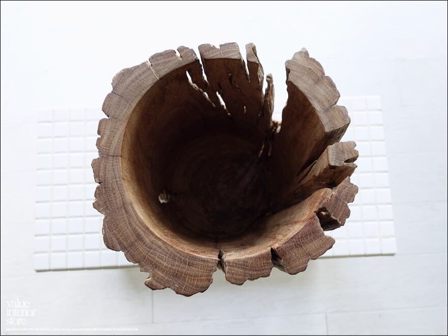 自然な様をそのままに削り出して製作したオールドチーク総無垢材のプランツカバー。個性的で硬く荒々しいチーク材独特の表情が魅力的です。そのままでもオブジェとしてもお楽しみいただけますが、植物とアレンジしていただくことで一層癒しの雰囲気づくりにお役立ていただけます。