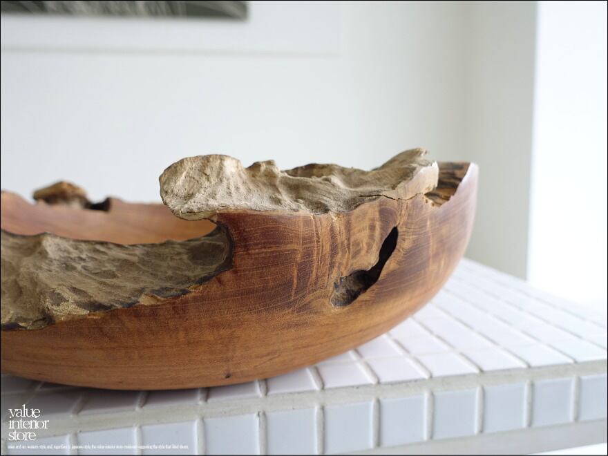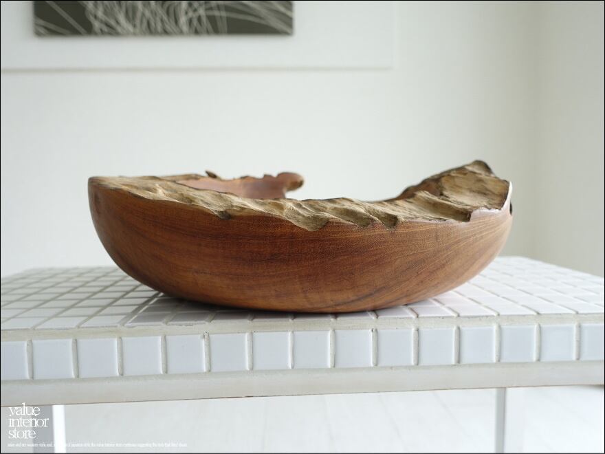 チーク無垢材 大型プリミティブオーバルトレイ / N11 入れ物 大型食器 サラダボウル 自然な様 ナチュラル Φ35cm 世界三大銘木