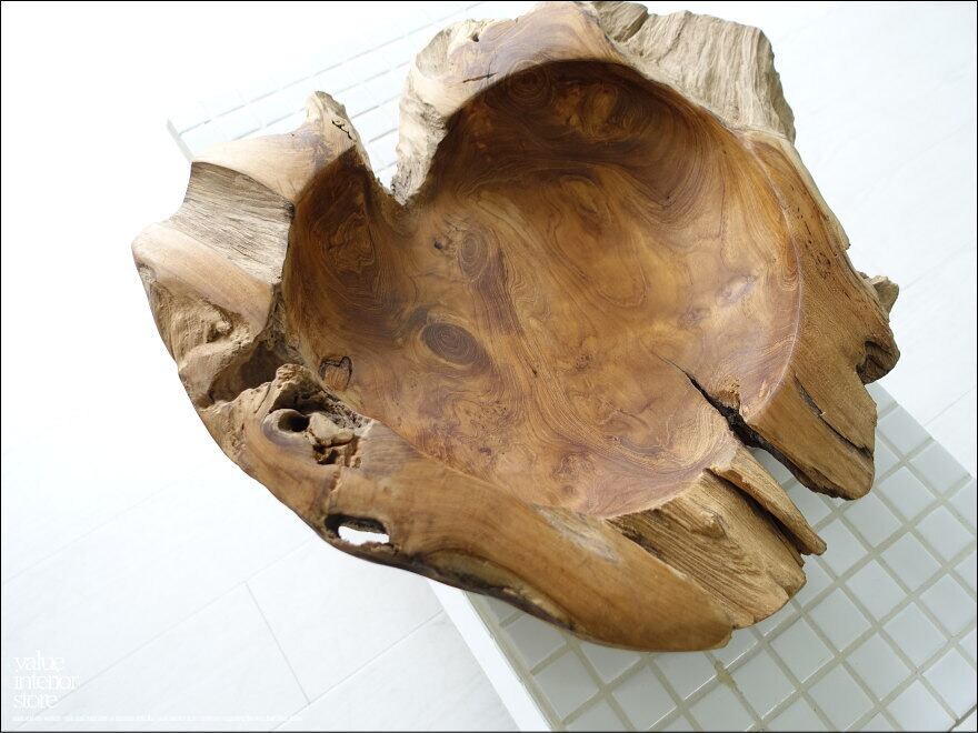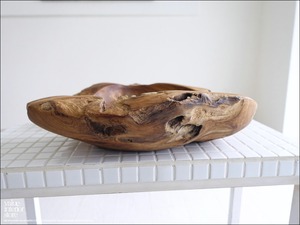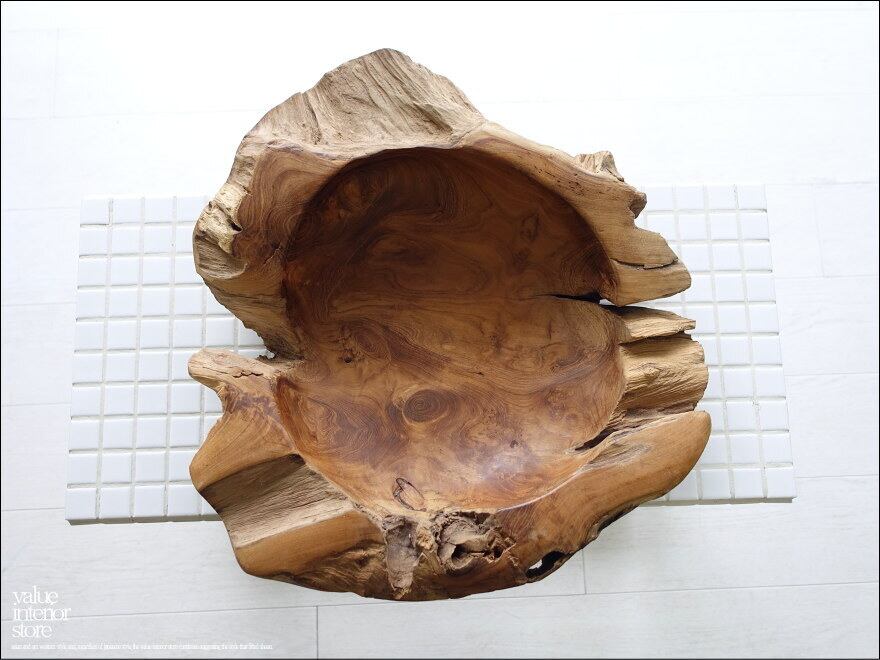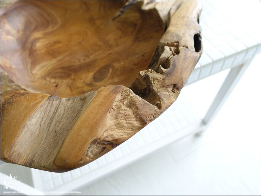 チーク無垢材 大型プリミティブオーバルトレイ / N12 入れ物 大型食器 サラダボウル 自然な様 ナチュラル Φ40cm 世界三大銘木