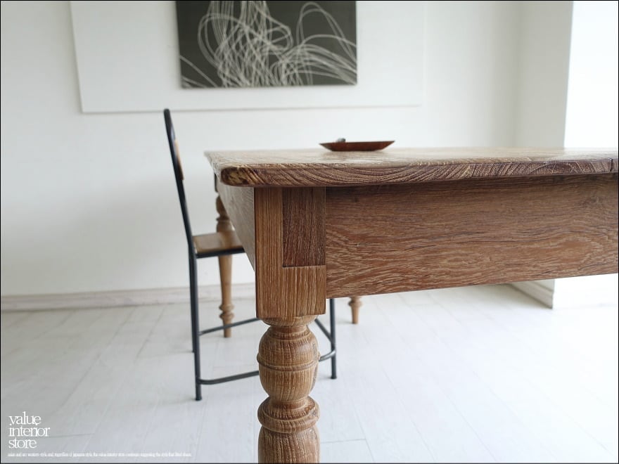 この商品は、表面再仕上げや欠損箇所の補修などをしている再生家具となります。元々の雰囲気は残して仕上げています。傷、ワレやフシ穴、色の濃淡、傾き、歪み、反り、汚れなどがございますが、素材や古いものの持つテイストとしてご理解をいただきますようお願い致します。