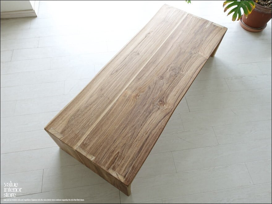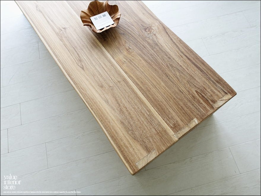一目見ただけで品質の良さを木肌から感じ取れるチーク無垢材のリビングテーブル。飾りのないシンプルな脚は、天板からそのままストンと床に下ろしただけのデザインで、個性的な木目と油分を含むチーク材独特のコントラストのある表面を全面から感じていただけます。おくつろぎをいただくお部屋の中心となるリビングで、落ち着きのある雰囲気をぜひお楽しみください。