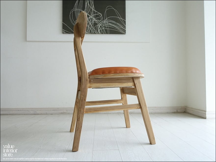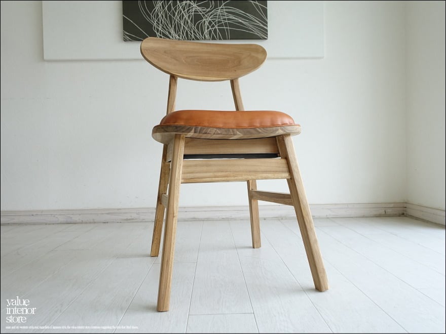 チーク無垢材 レザーチェアLB 本皮 ダイニングチェア 椅子 一人掛けチェア 本革 椅子 手作り ナチュラル 銘木家具