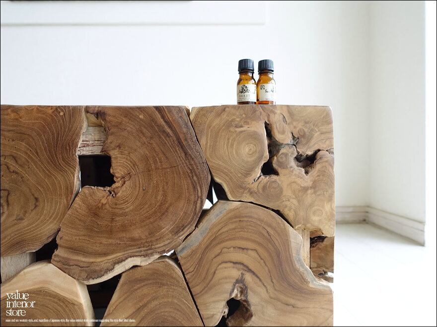 チークをブロックのような形に組み合わせたデザインでインテリアとしても配置しやすく、椅子だけでなくディスプレイとして使っても素敵です。幅広いインテリアにも馴染み、ナチュラルで素朴な雰囲気もお楽しみいただけます。ぜひこの機会にどうぞ。
