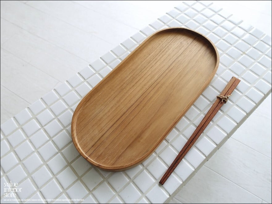 チークプレートOval/L32cm 取り皿 トレイ 木の皿 平皿 前菜皿 お盆 和食器 木製食器 ウッドトレイ 無垢材食器
