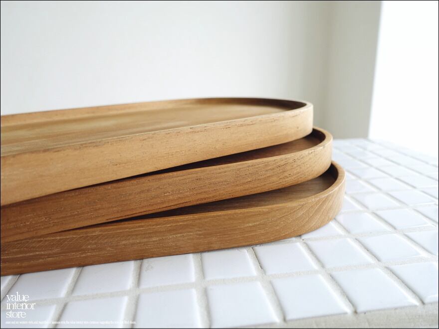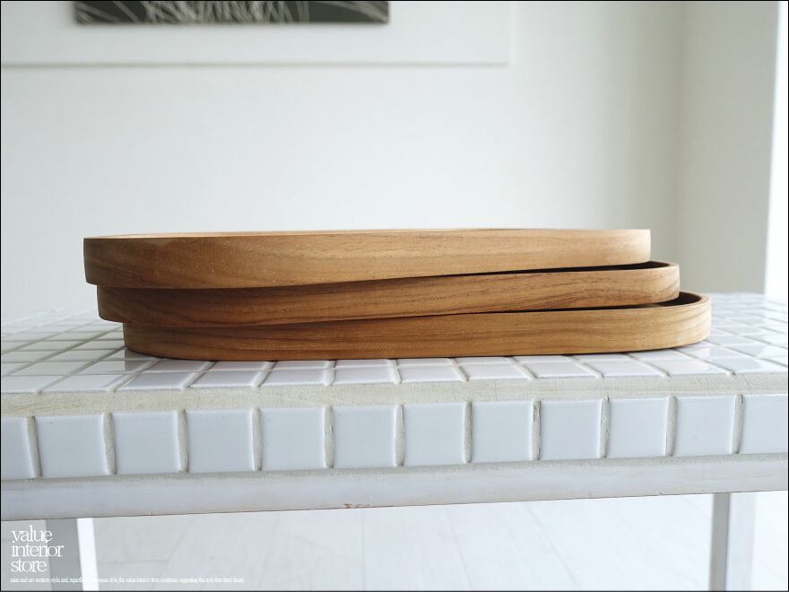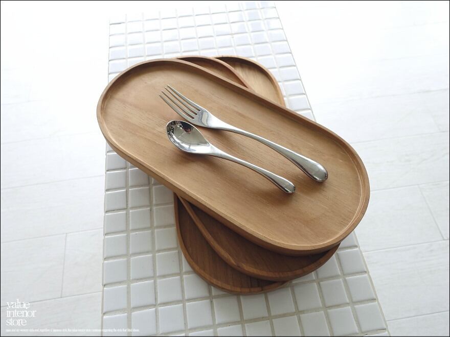 ナチュラルで温もりのあるチーク材の木肌が素敵なオーバルプレート。ハンドメイドならではの滑らかな曲線で手触りと口当たりの良さが感じられます。いつもの食卓に楽しさとアクセントづくりにぜひお使いください。