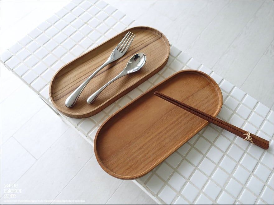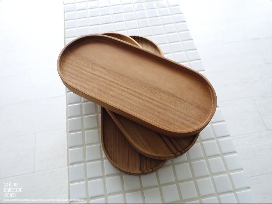 ナチュラルで温もりのあるチーク材の木肌が素敵なオーバルプレート。ハンドメイドならではの滑らかな曲線で手触りと口当たりの良さが感じられます。いつもの食卓に楽しさとアクセントづくりにぜひお使いください。