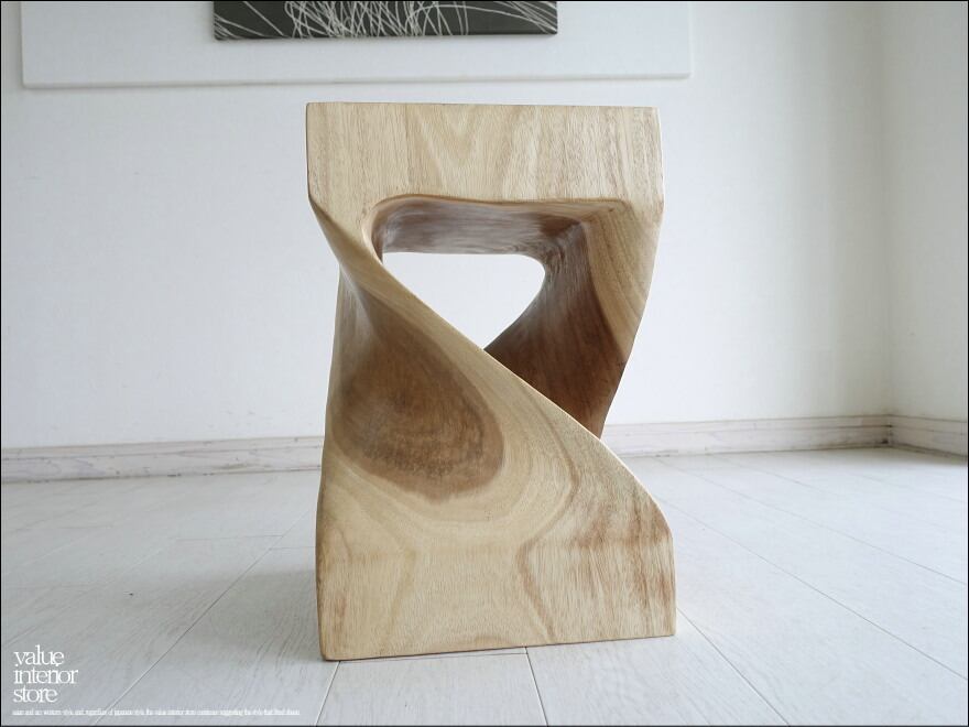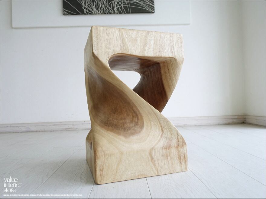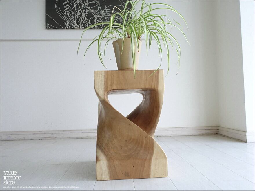 コロンとしていて螺旋状にくり貫いてあるデザインも素敵です。ナチュラルな雰囲気で幅広いテイストに合わせやすく設置しやすいスツール。スツール以外にも花台やディスプレイ台としてもお勧めです。