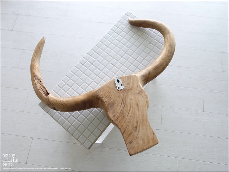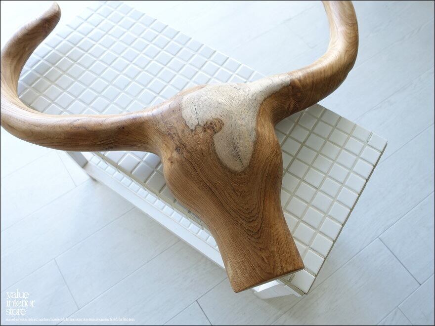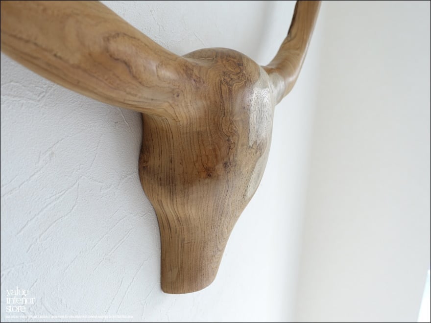 ウォールデコレーションbuffalo 壁飾り オブジェ バッファロー 無垢材アート ウォールアクセント チーク材 一点物 世界三大銘木