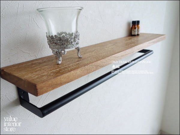 オールドチークマルチハンガーN ウォールハンガー 壁掛収納 棚付きタオル掛け ウォールシェルフ ラック 古木 レトロ 銘木 総無垢