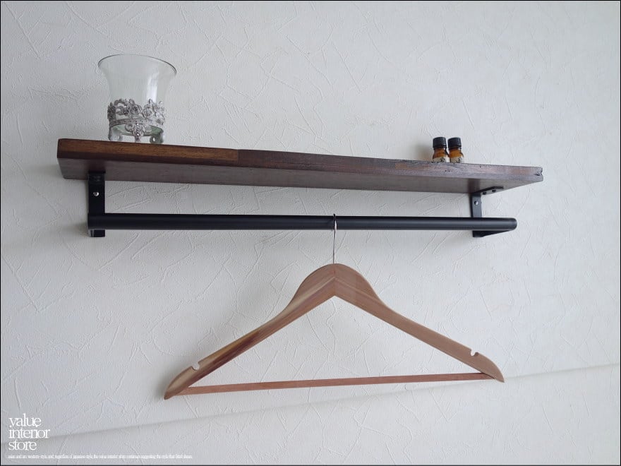 オールドチークにアイアンバーのついた幅広のマルチハンガー。