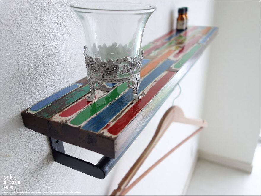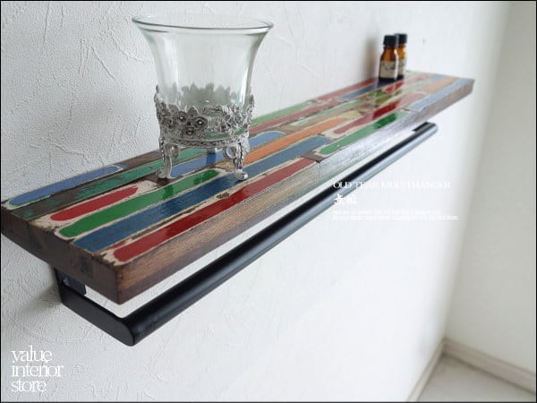 オールドチークマルチハンガーMIX ウォールハンガー 棚付きタオル掛け ウォールシェルフ ラック レトロ 銘木 ナチュラル 総無垢
