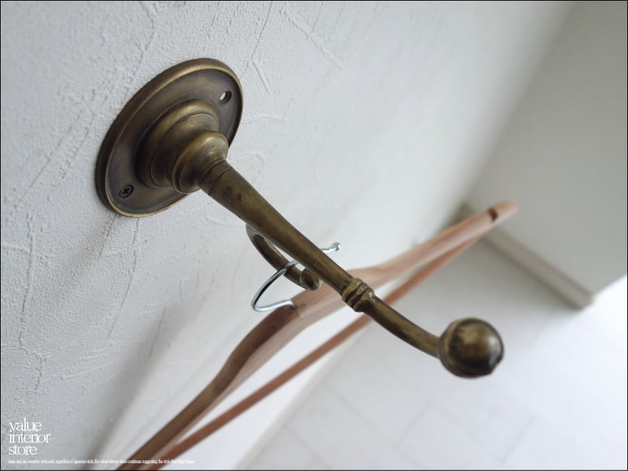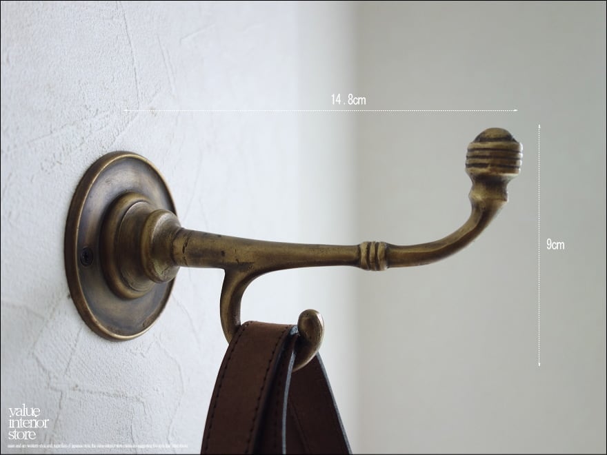 大きさのあるブラスフック。真鍮独特のくすみのある渋い雰囲気があります。