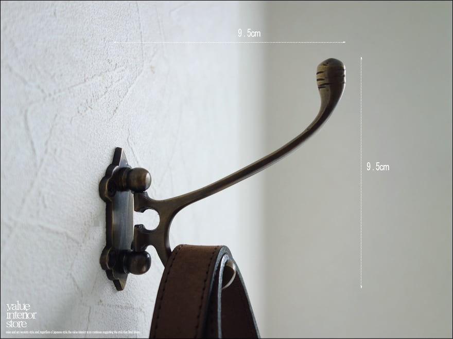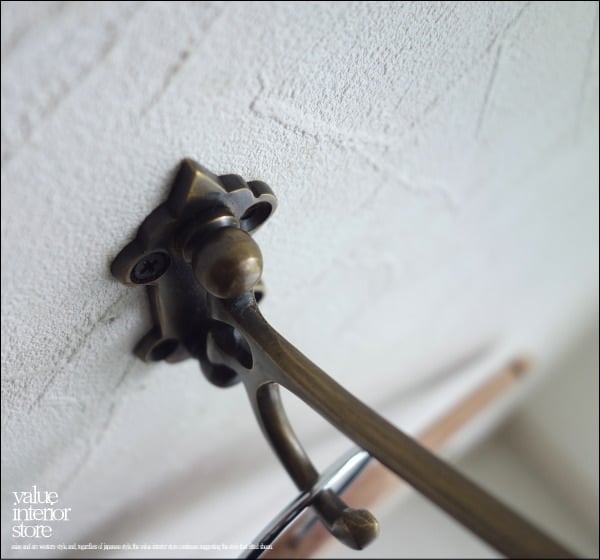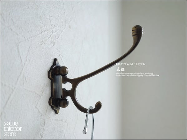 左右にフックが動くことで便利にお使いいただける壁付け真鍮フック。