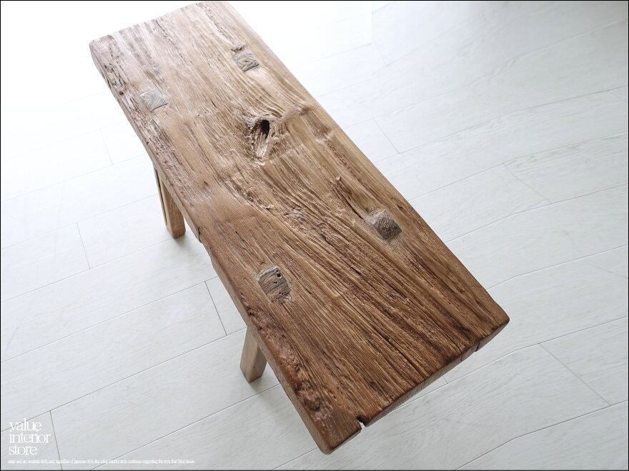 オールドチーク無垢材 ベンチZ/E 長椅子 古材家具 スツール 椅子 イス 花台 一枚板 プリミティブ ナチュラル 無垢材インテリア